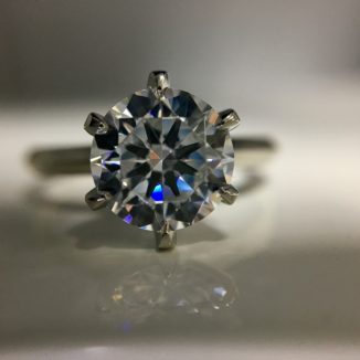 7.5mm Trü-Hybrid D/FL in a platinum 6-Claw Solitaire