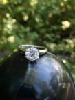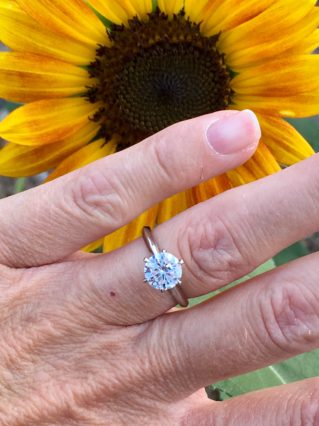 Outdoors photo of Trü-Hybrid 1.5ct in Platinum solitaire, no filter or effects